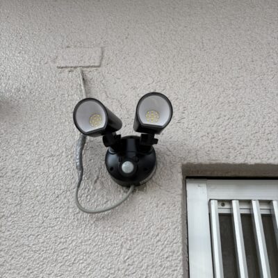 【施工内容】配線状態の確認、既存器具の撤去、新しいセンサーライトの取付、点灯確認