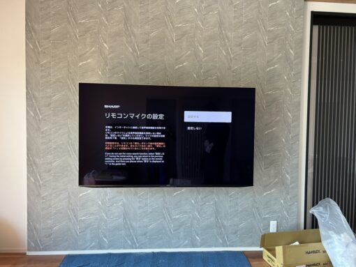 お客様は新築建設時からテレビを壁掛けにする予定で、リビングの壁面にはあらかじめ「ふかし壁」が設けられていました。ふかし壁とは、壁を通常より前に出して施工する構造で、内部に配線を通したり、壁掛け金具をしっかり固定できる下地を確保できるのが特徴です。